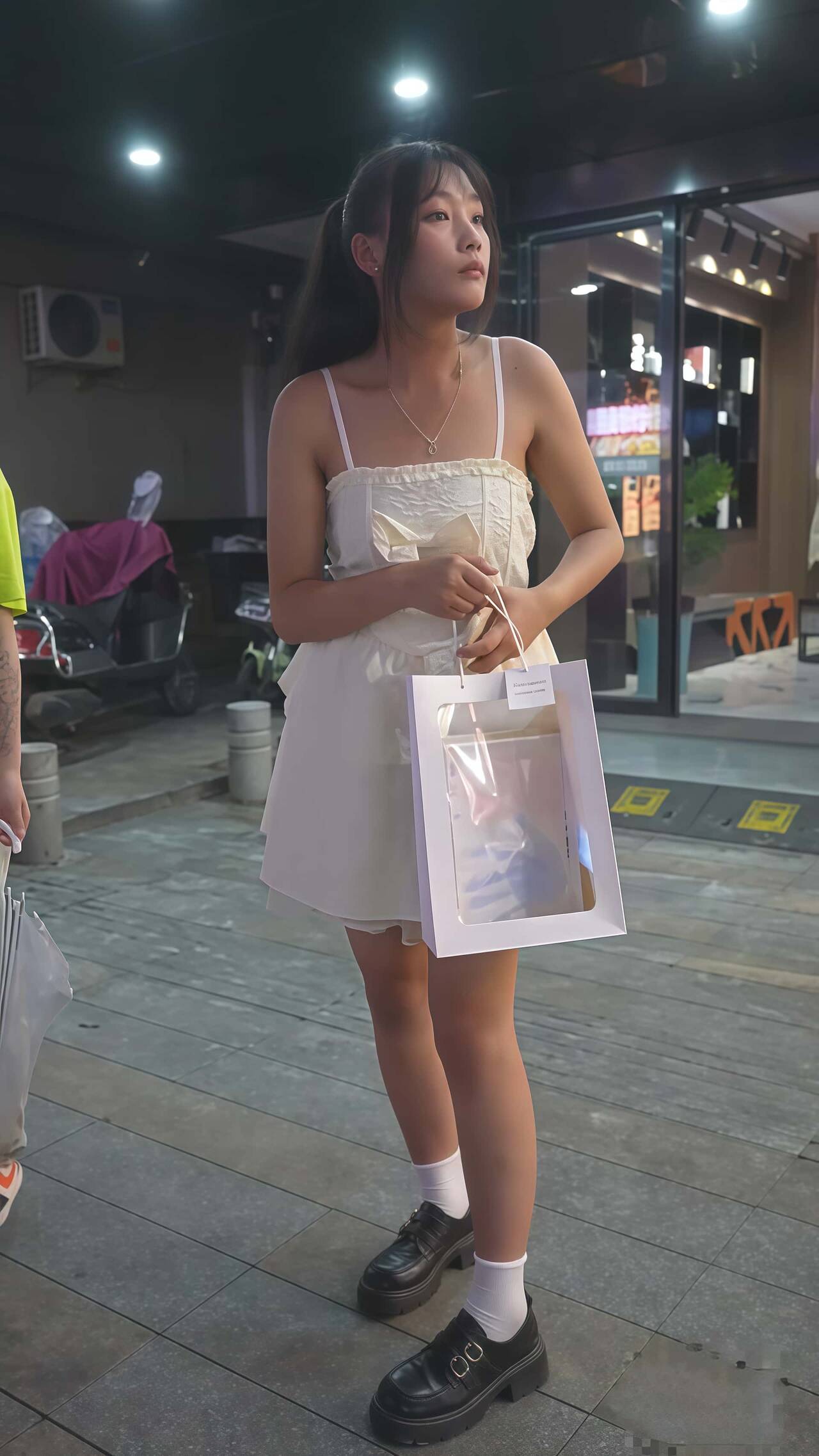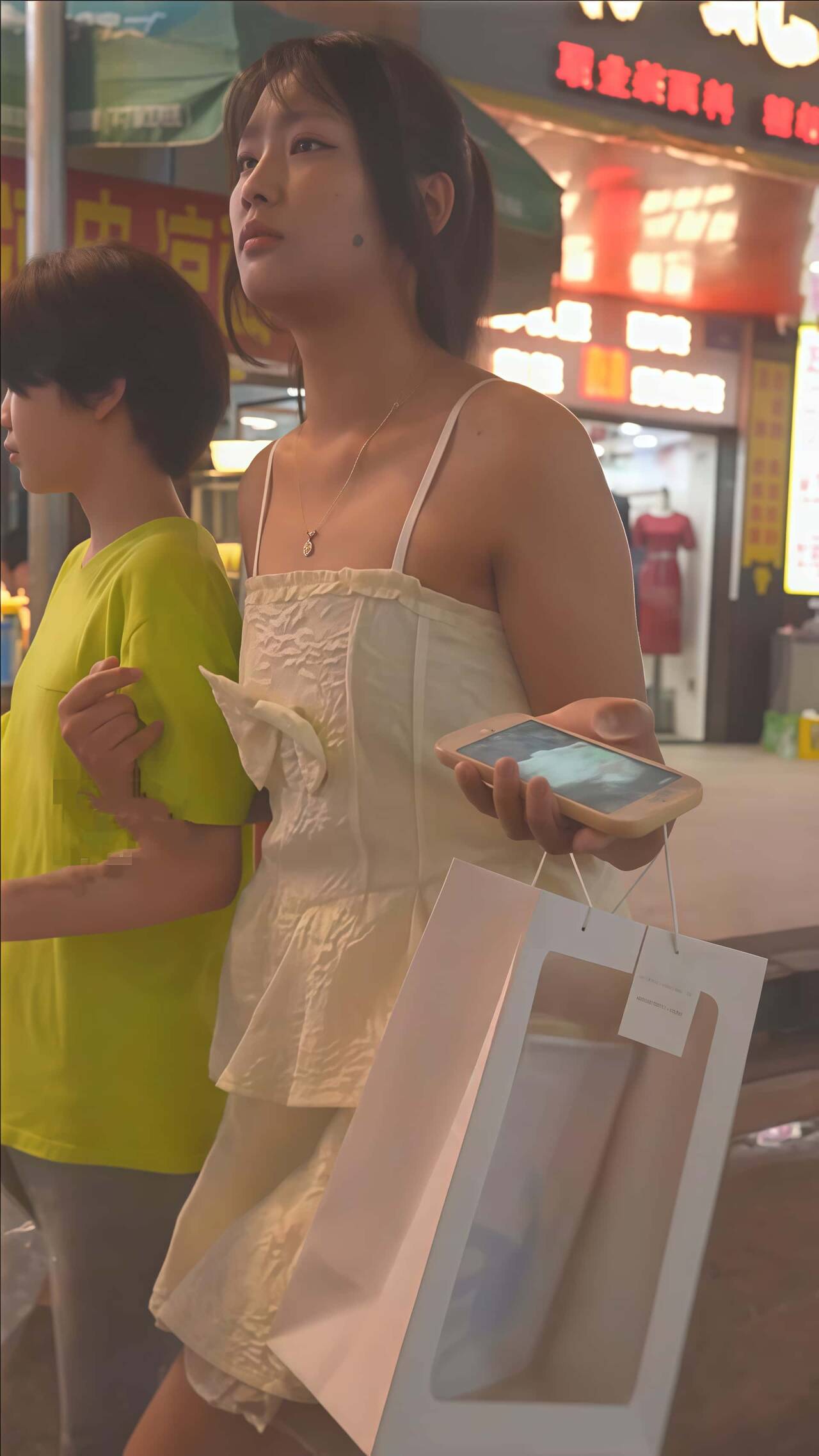 【夜市大排档美食街】一路跟拍「公主裙」美女抄底想拍她内裤结果发现真空「🈚️内裤🩲」来回走两片肥鲍鱼摩擦起了火花▶属实养眼【此贴⚠️必下】