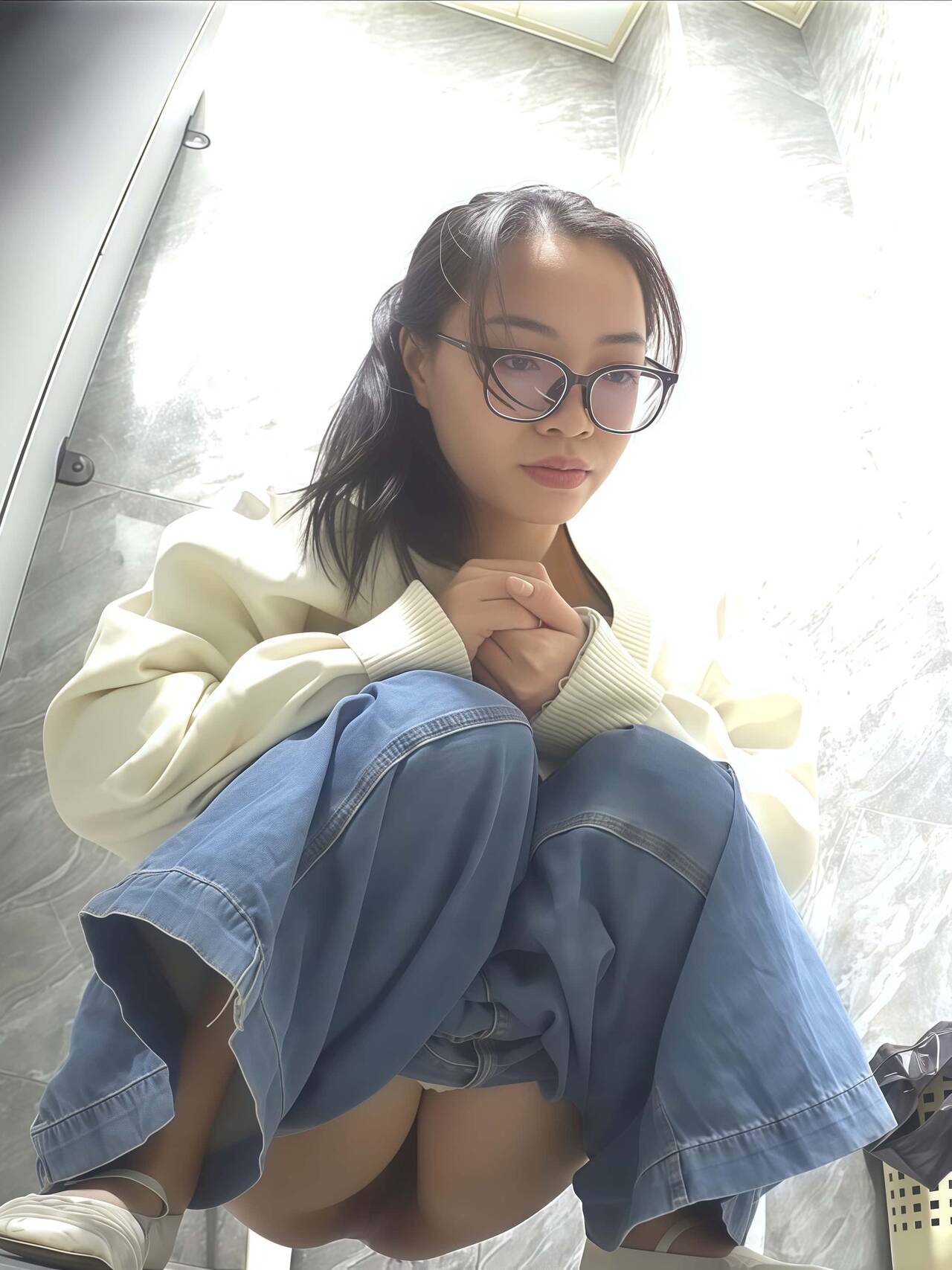 新档流出🎀酒吧女厕🎀正面全景高清偷拍:牛仔裤眼睛斯文小妹子✿挽个小手小鸟依人小模样✿骚鲍鱼还挺紧致✿十个眼镜九个骚不知道这位生活中是不是个欲女